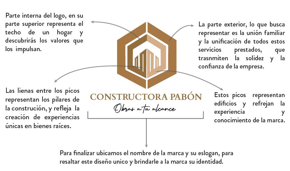 El proceso incluyó la creación del logotipo, isotipo, eslogan y la elaboración de un manual de marca que define todos los lineamientos gráficos para garantizar coherencia en cada aplicación. El logo fue diseñado a partir de elementos simbólicos: un techo que representa el hogar, picos que evocan edificios y conocimiento técnico, y pilares que expresan estabilidad y compromiso. La estructura general comunica confianza, unión familiar y profesionalismo.